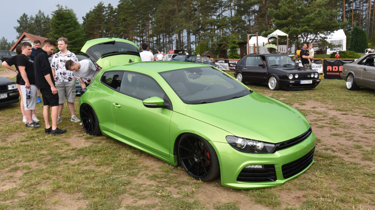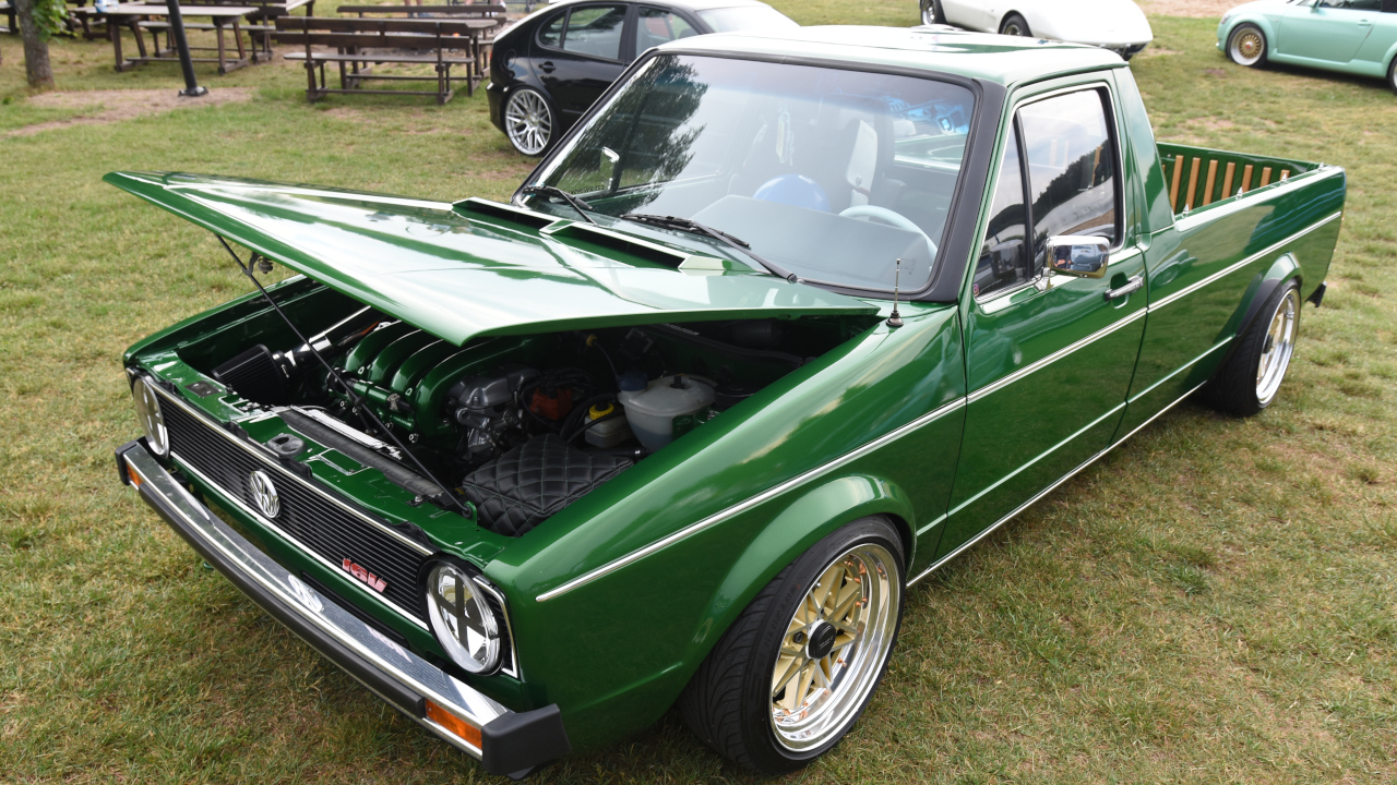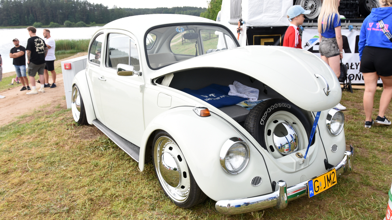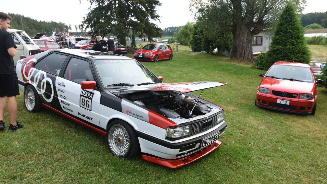 Przyjechałem golfem "dwójką" z 1989 roku z silnikiem 1.8 turbo. Pomysł m&m`s wpadł rok temu i myślę, że rzuca się w oczy, jest co oglądać. Środek aktualnie jest oryginalny oprócz kierownicy, no ale z zewnątrz zawieszenie, hamulce wszystko jest pozmieniane, włącznie z silnikiem, skrzynią od A do Z.