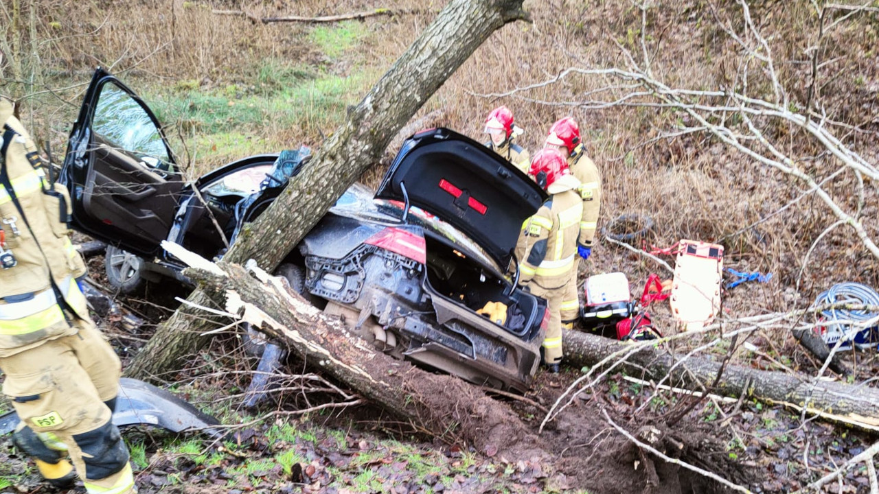 Wypadek na drodze krajowej 20 w okolicach Ząbinowic. Cztery młode osoby trafiły do szpitala