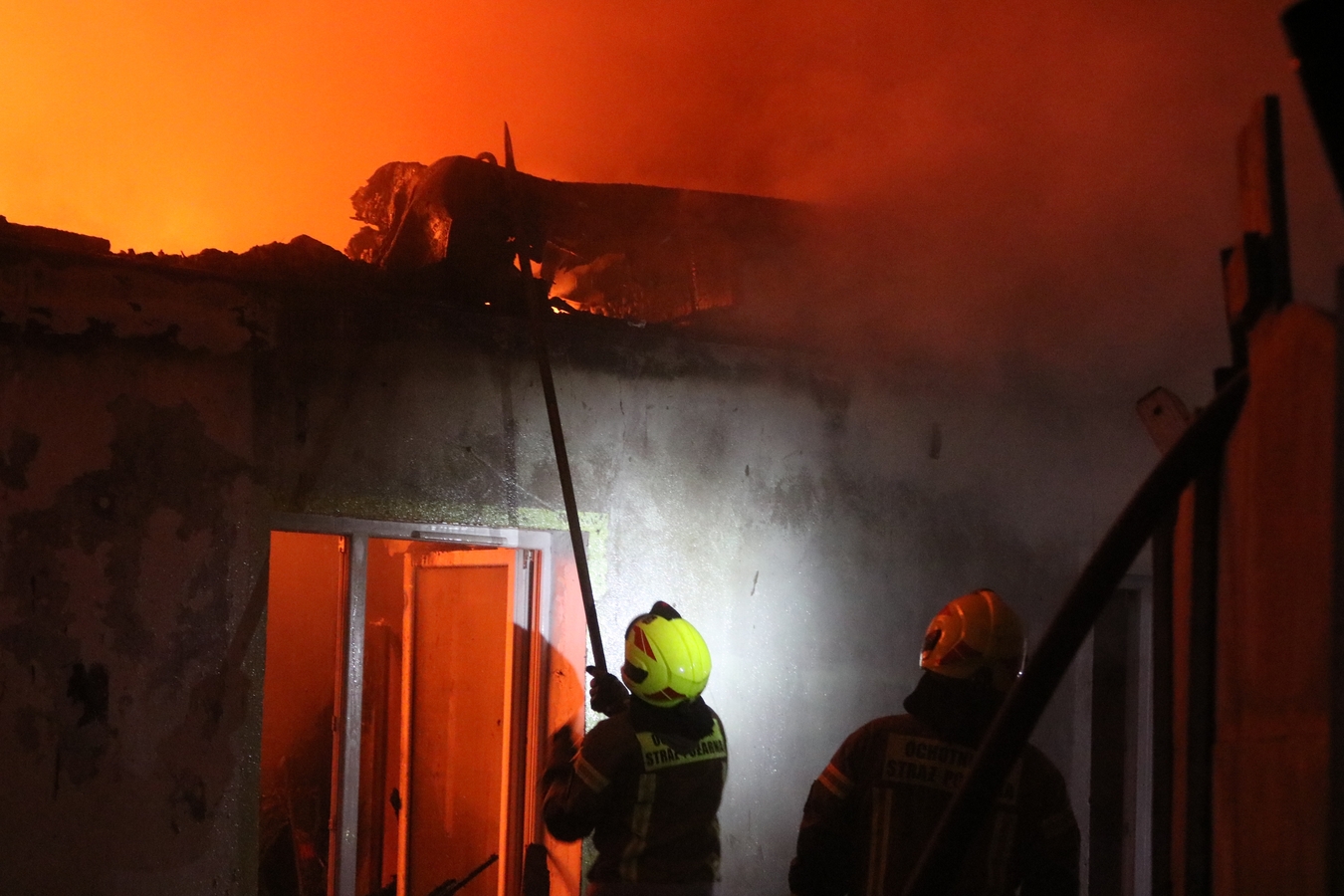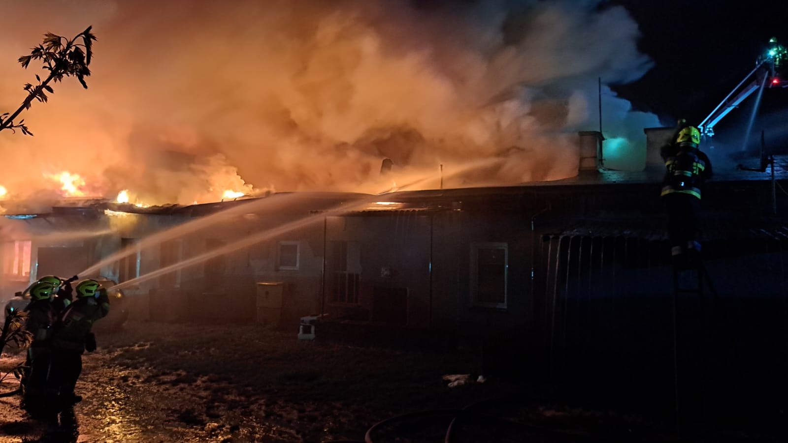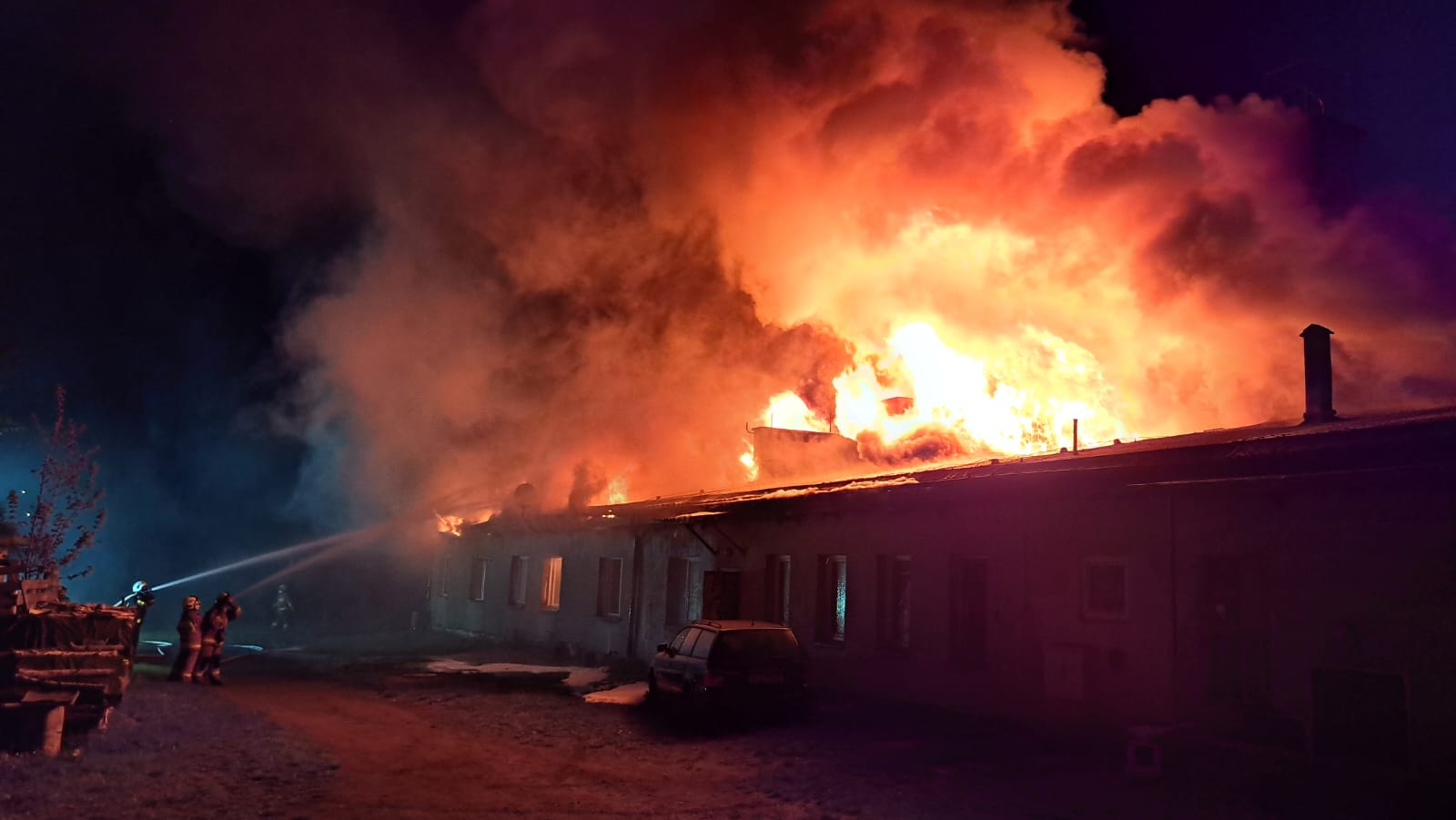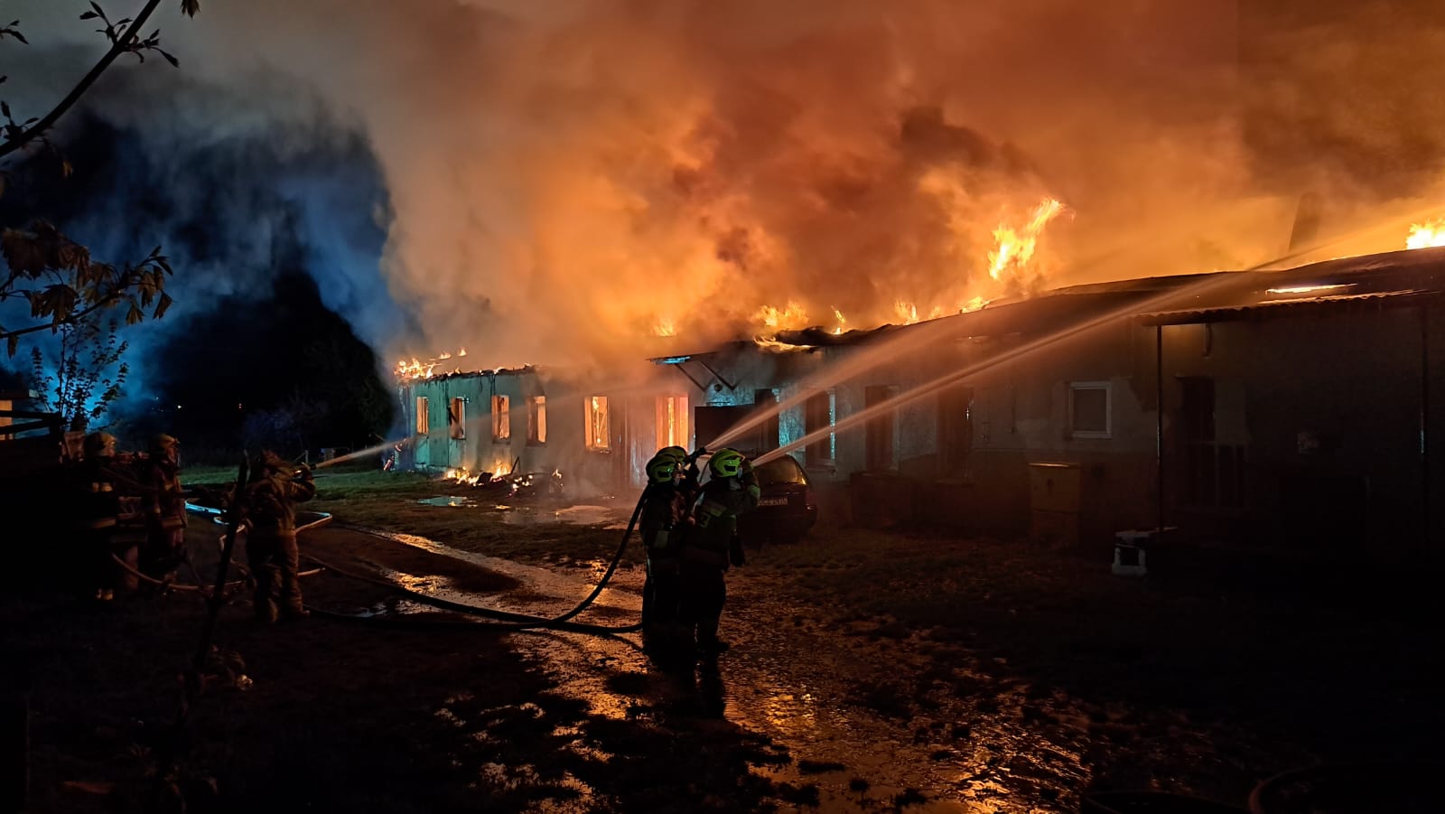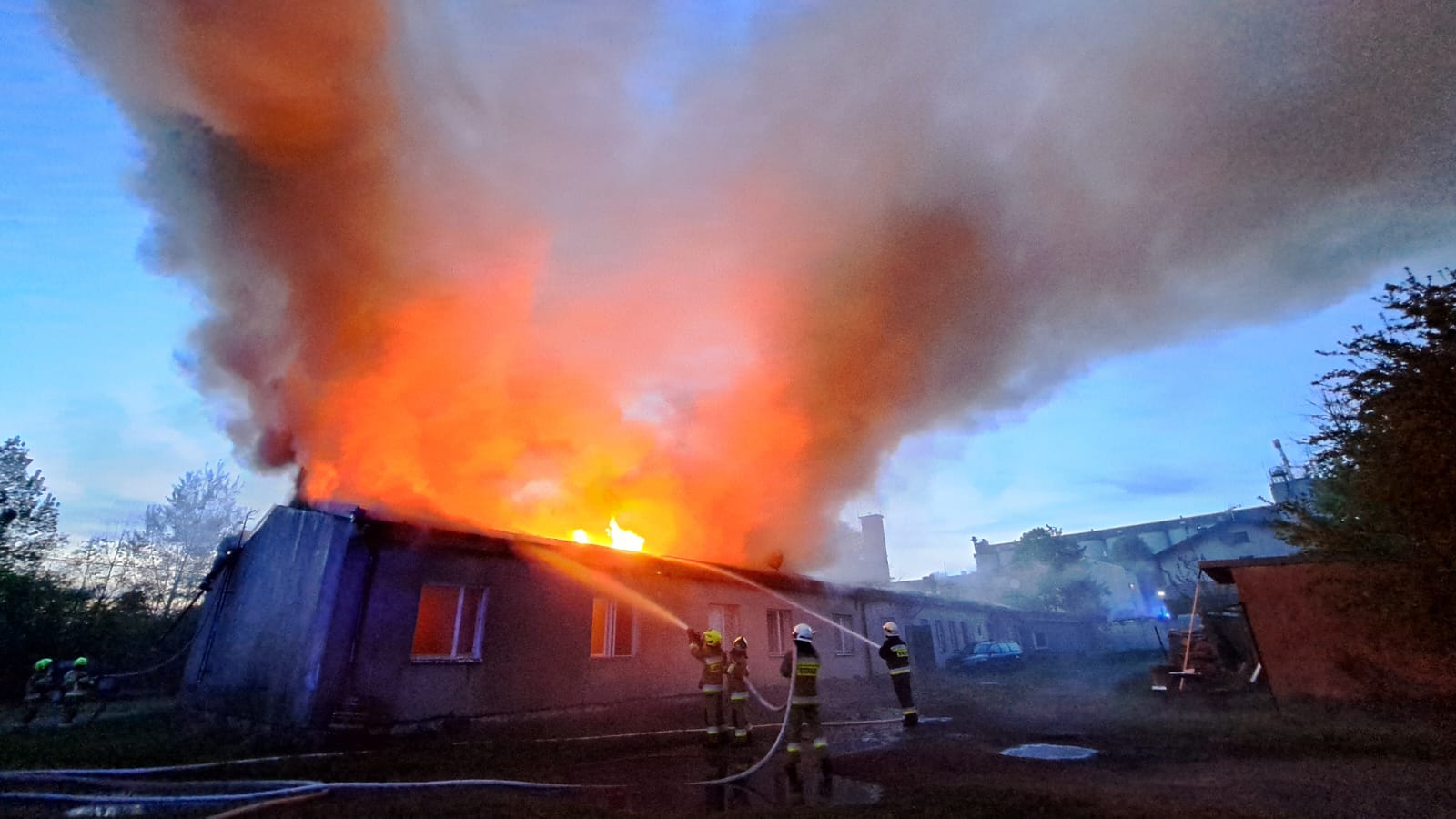 "Z dachu wyszły płomienie". Spłonął barak mieszkalny w Człuchowie. Z ogniem walczyło 17 zastępów straży pożarnej (FOTO, WIDEO, AKTUALIZACJA)