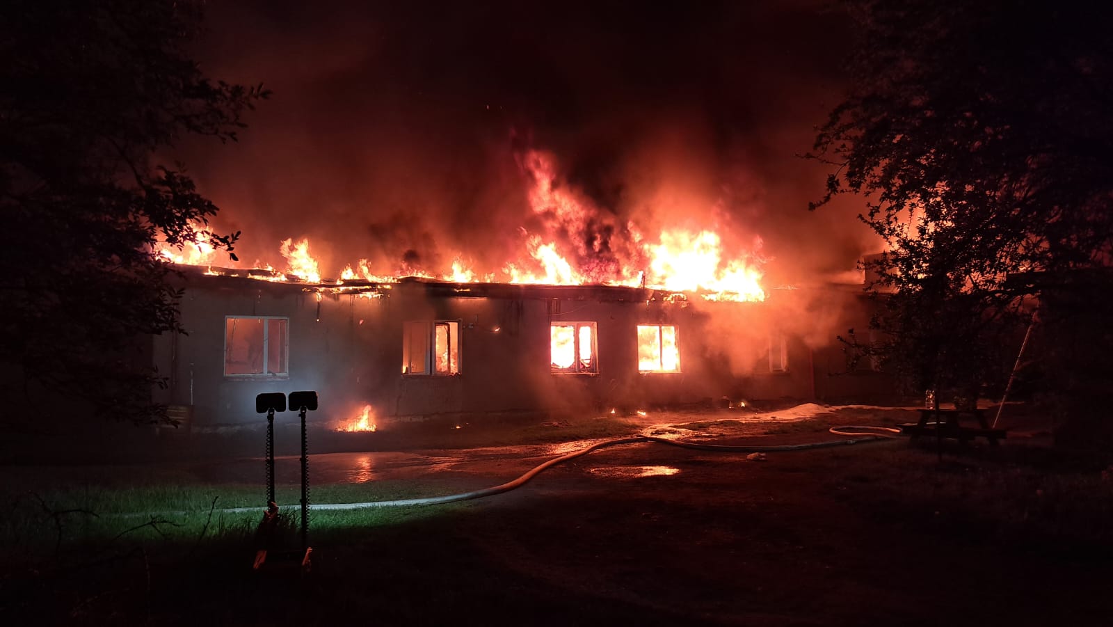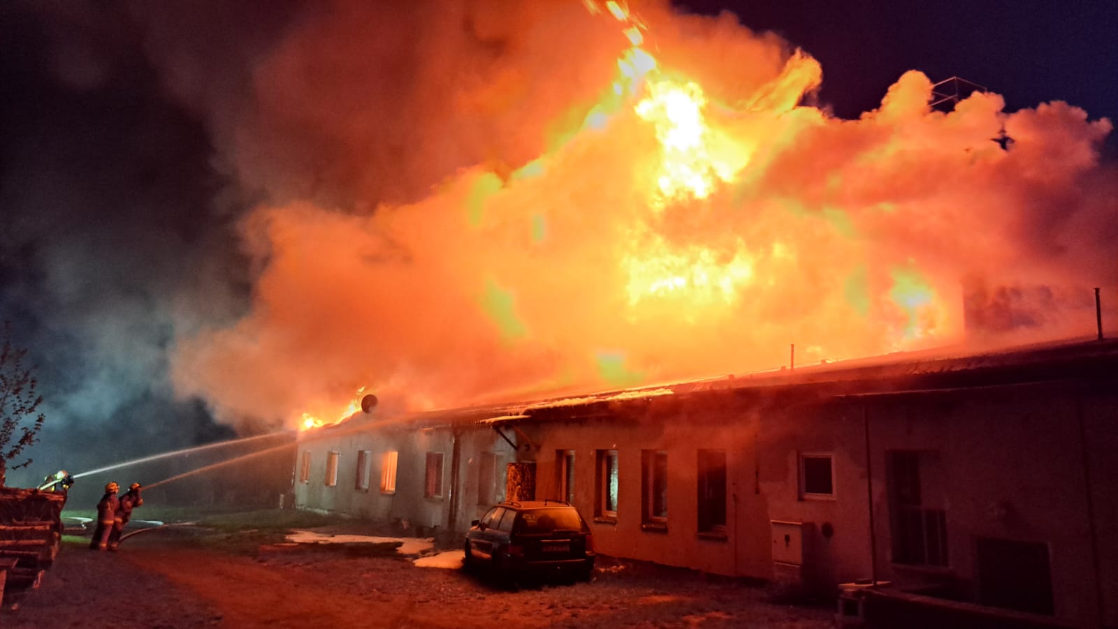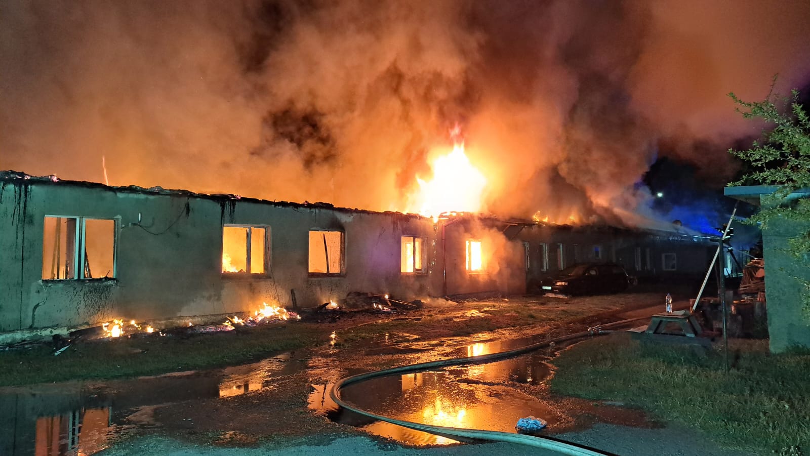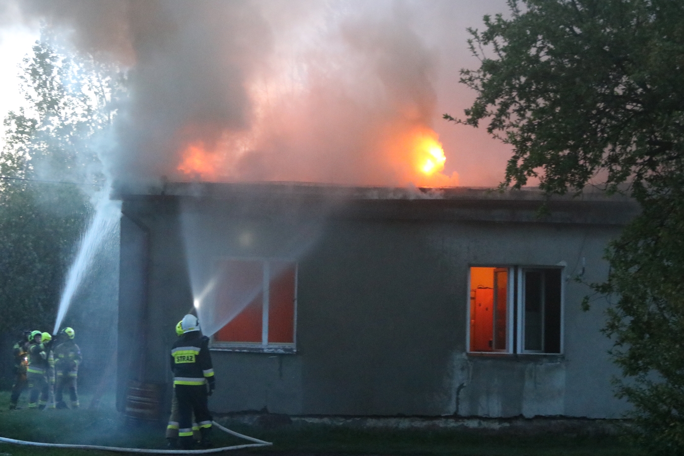 "Z dachu wyszły płomienie". Spłonął barak mieszkalny w Człuchowie. Z ogniem walczyło 17 zastępów straży pożarnej (FOTO, WIDEO, AKTUALIZACJA)