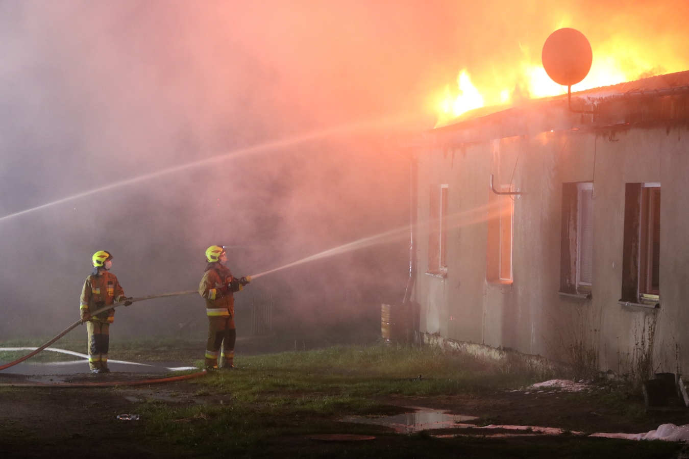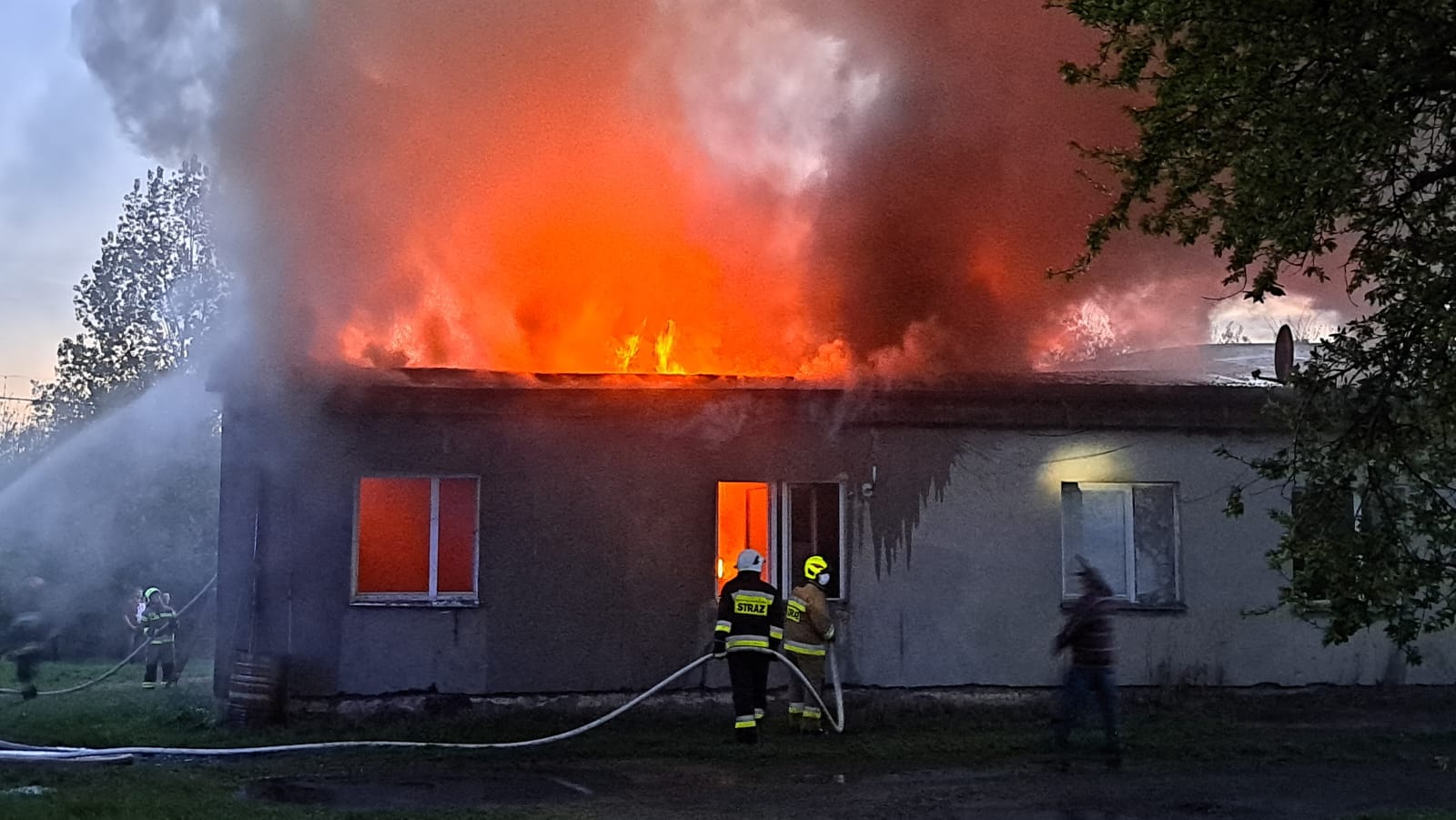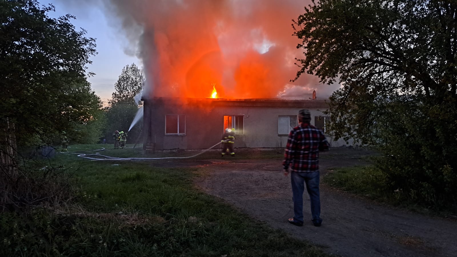 Sąsiadka przybiegła i mówi, że się pali. Każdy z nas wyszedł na dwór. Z tamtego końca budynku dym wychodził, no i się rozprzestrzeniało do przodu. Tam w ostatnim mieszkaniu wychodził dym z okna, a później z dachu wyszły płomienie i tak jest o, jak teraz - widzi pan.