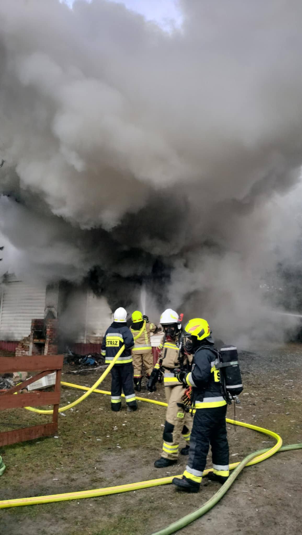 Pożar domku letniskowego w gminie Stara Kiszewa. Z ogniem walczyło 5 zastępów straży pożarnej
