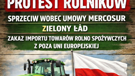 We wtorek (30.12) protest rolników przy drodze wojewódzkiej 240 w Żalnie i Bysławiu. Pikieta przeciwko umowie Mercosur
