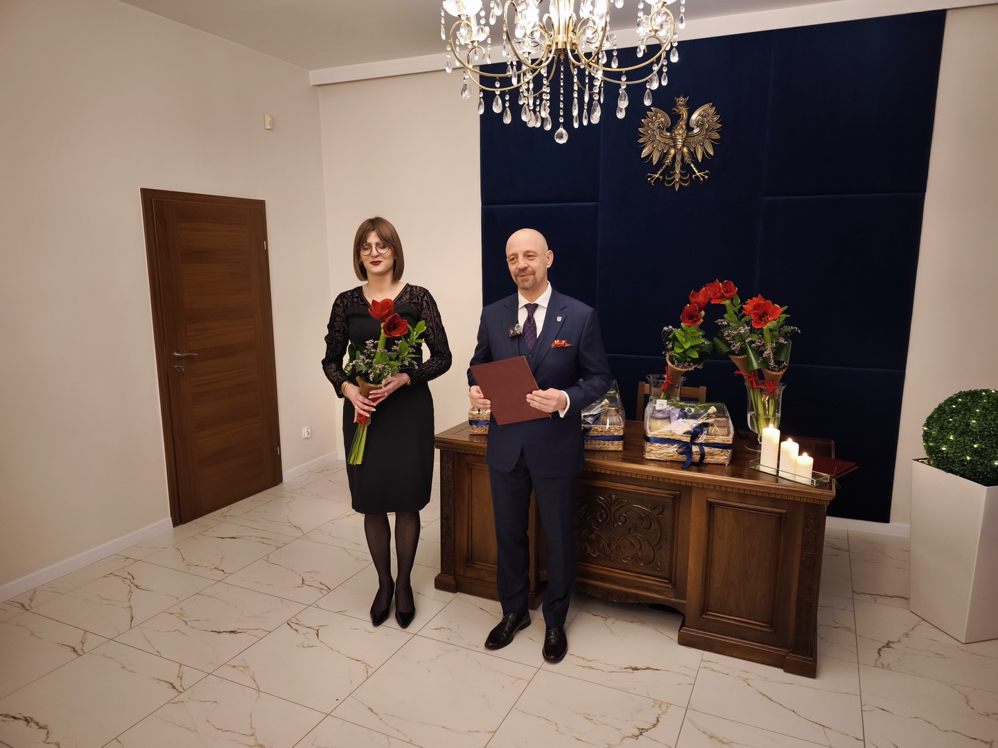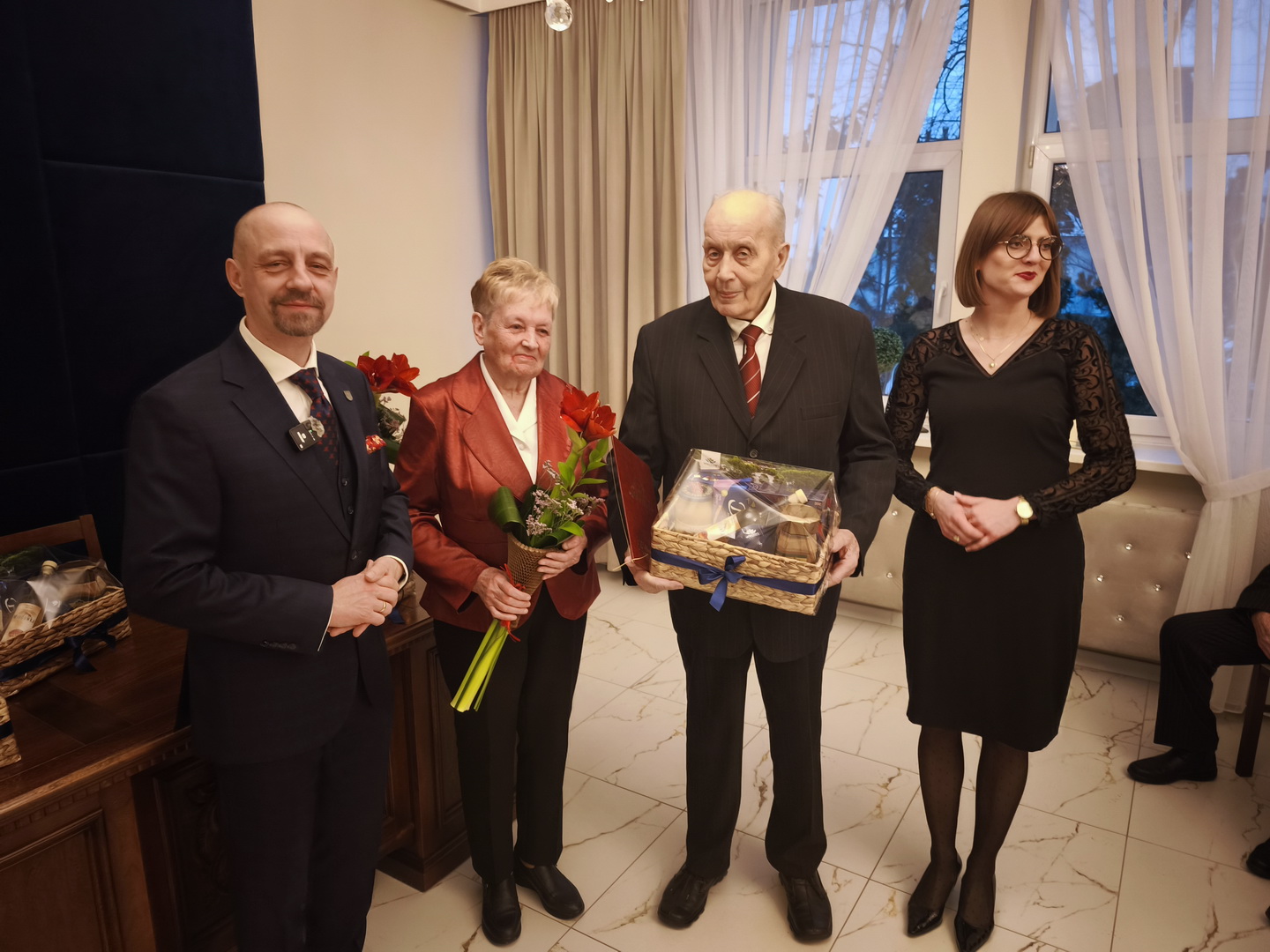 Szanowni państwo, dostojni jubilaci. Cieszę się bardzo, że w tak wyjątkowym momencie możemy się spotkać w Urzędzie Stanu Cywilnego w Więcborku świętując z państwem przepiękny jubileusz 60-lecia pożycia małżeńskiego. To dla nas wielki zaszczyt, że możemy dzisiaj Państwa gościć i dzielić się z wami waszą radością.