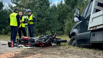 Tragiczny wypadek w powiecie bytowskim. Nie żyje 58-letni motocyklista, który zderzył się z dostawczym mercedesem (FOTO)