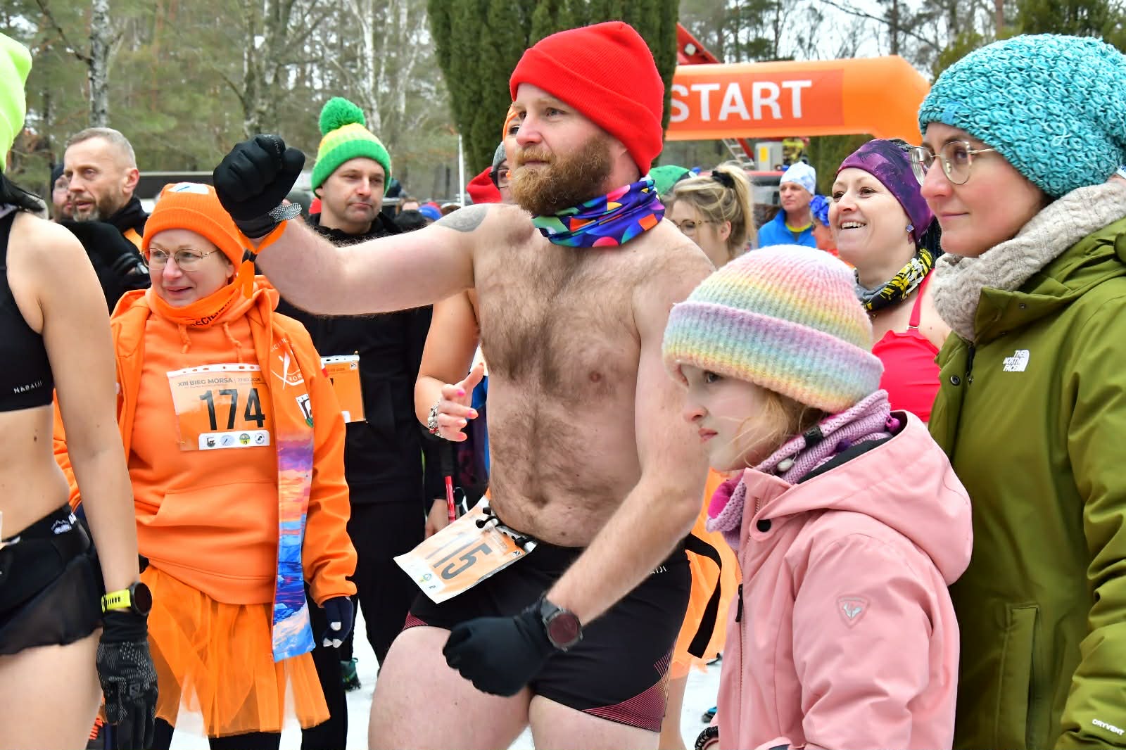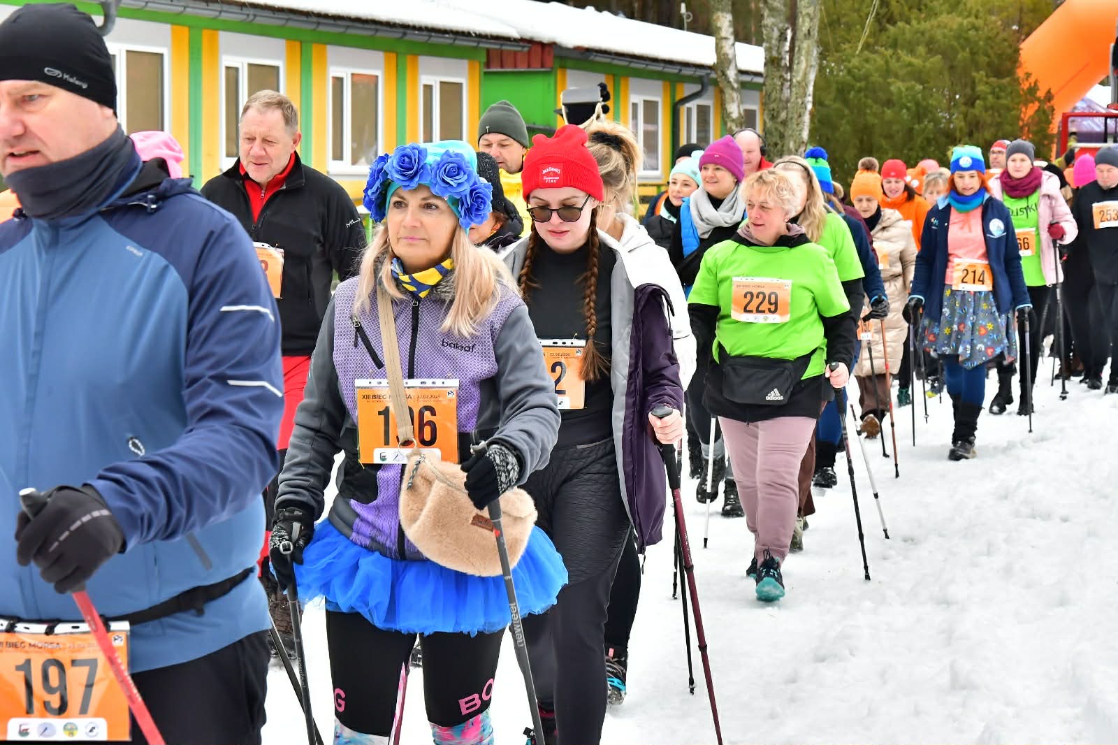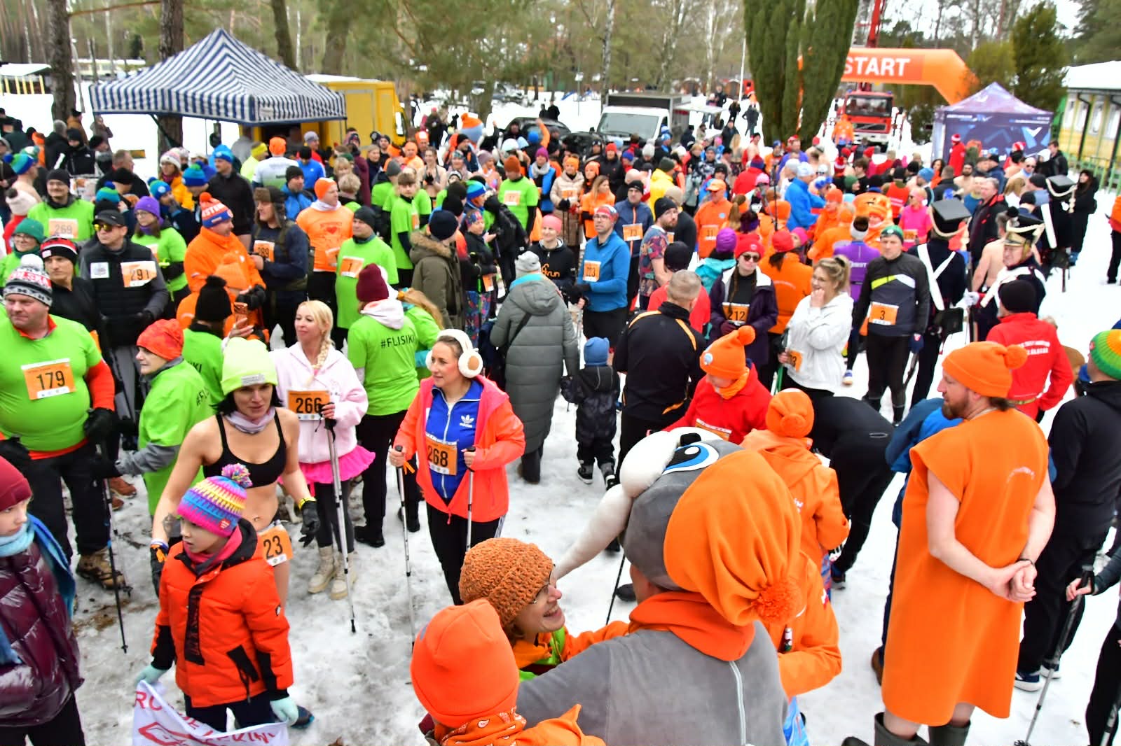 W tym roku mamy wyjątkową liczbę uczestników. Już w elektronicznych zapisach na nordic walking rozeszły nam się wszystkie numery. Dzisiaj zabrakło już numerów dla osób. które się nie zdążyły zapisać przez elektroniczne zapisy. Impreza jest wyjątkowa w tym roku ze względu na warunki pogodowe. Po raz pierwszy musieliśmy odśnieżać trasę, a wyrąbanie przerębla to było coś naprawdę wielkiego.