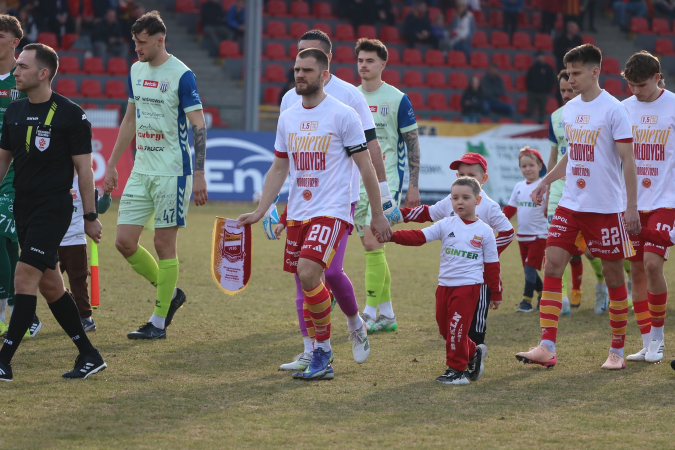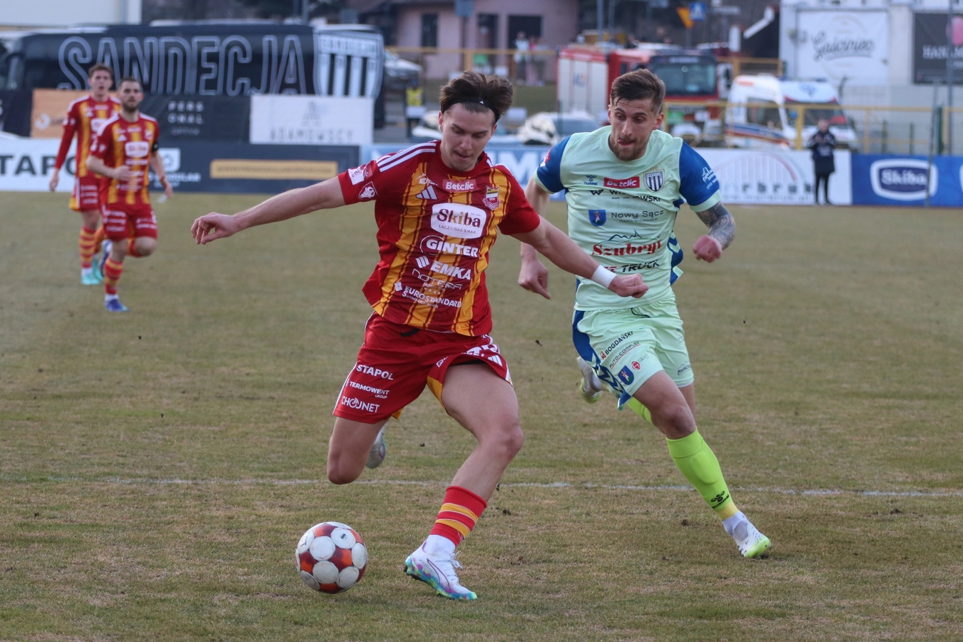 Sandecja: Mateusz Jeleń - Wiktor Pleśnierowicz, Wojciech Błyszko (82 Kamil Słaby), Tomasz Nawotka, Kamil Ogorzały, Przemysław Skałecki, Aleksander Wołczek (75 Bartłomiej Juszczyk), Bartłomiej Kasprzak (64 Maciej Żurawski), Daniel Pietraszkiewicz (64 Simeon Oure), Kacper Talar, Filip Piszczek (75 Tomasz Kołbon). Trener: Rafał Smalec.