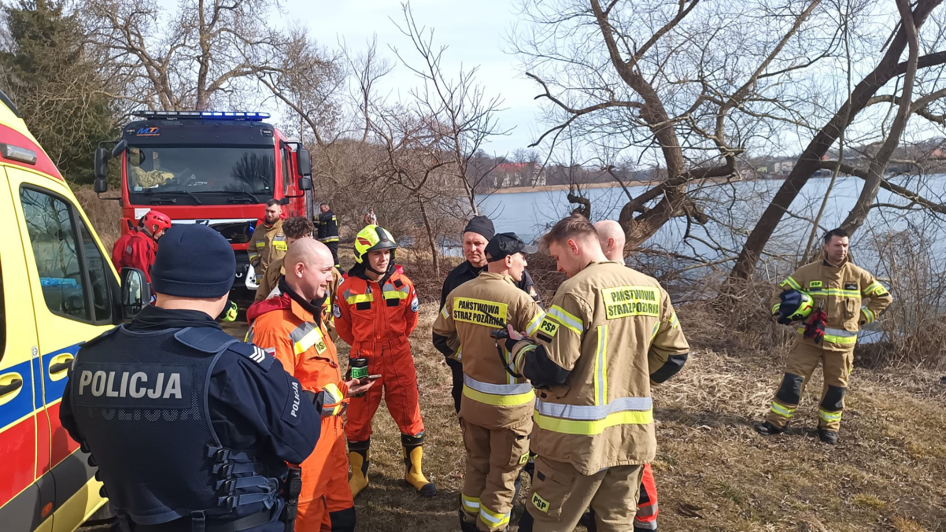 Na miejscu interweniowali policjanci, ratownicy medyczni oraz pięć zastępów straży pożarnej. Właśnie strażakom udało się wydobyć mężczyznę na brzeg.