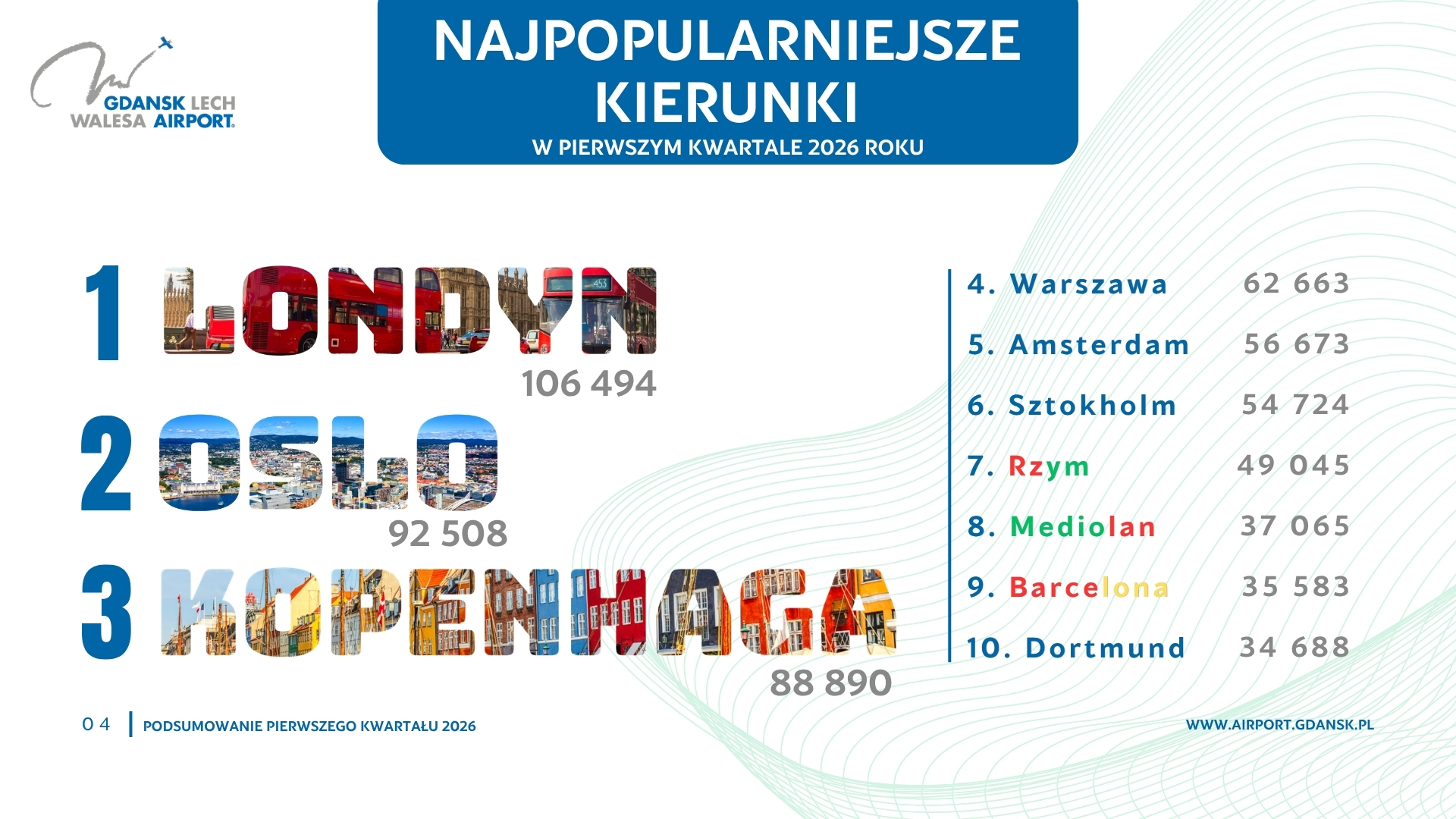 Jak wynika z danych Portu Lotniczego Gdańsk, w ruchu lotniczym nieregularnym, w tym czarterowym, w pierwszym kwartale tego roku gdańskie lotnisko obsłużyło o 62 procent więcej pasażerów niż w porównywalnym okresie roku poprzedniego. Najwięcej osób podróżowało do Egiptu, Turcji, Hiszpanii i Maroka.