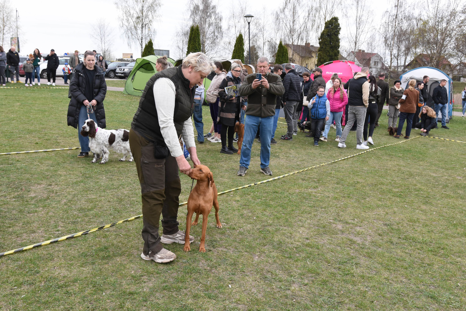 Dzisiaj mamy wystawę psów rasowych, psów grup myśliwskich. Jest około 165 psów 40 kilku ras. Są tutaj jamniki różnego rodzaju: gładkowłose, szorstkowłose, miniaturowe, królicze i standardy. Mamy również całą gamę terierów, psów dowodnych takich jak labradory i golden retrievery, są również posokowce, naprawdę wiele różnych ras. Trzeba to zobaczyć, żeby wiedzieć, o czym mówimy.