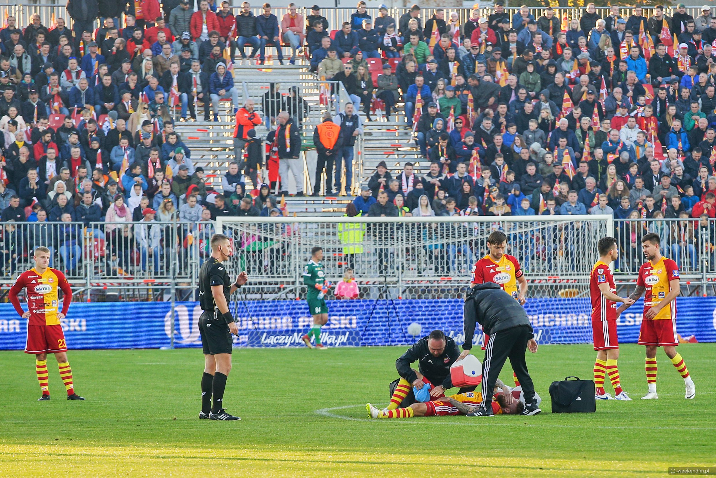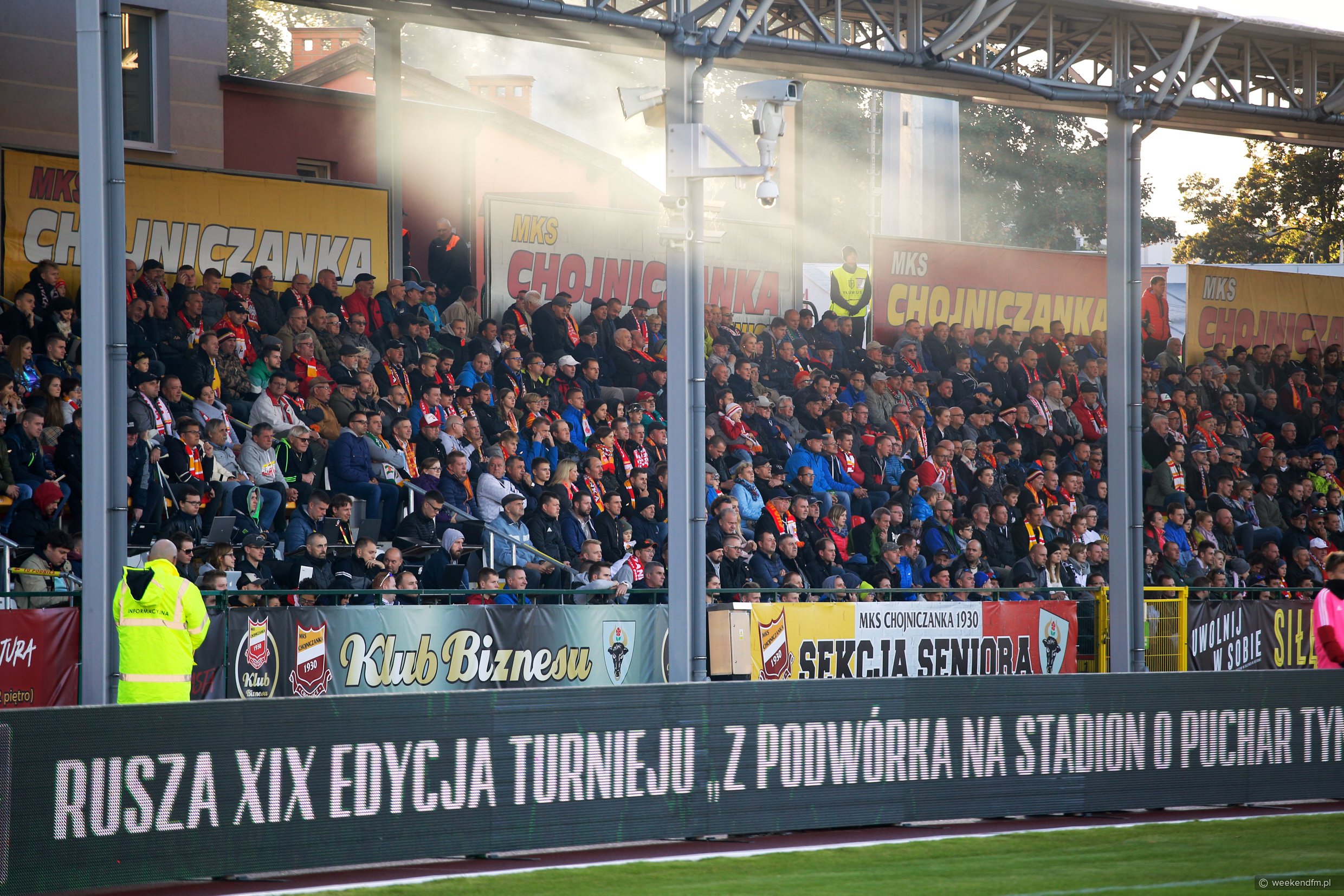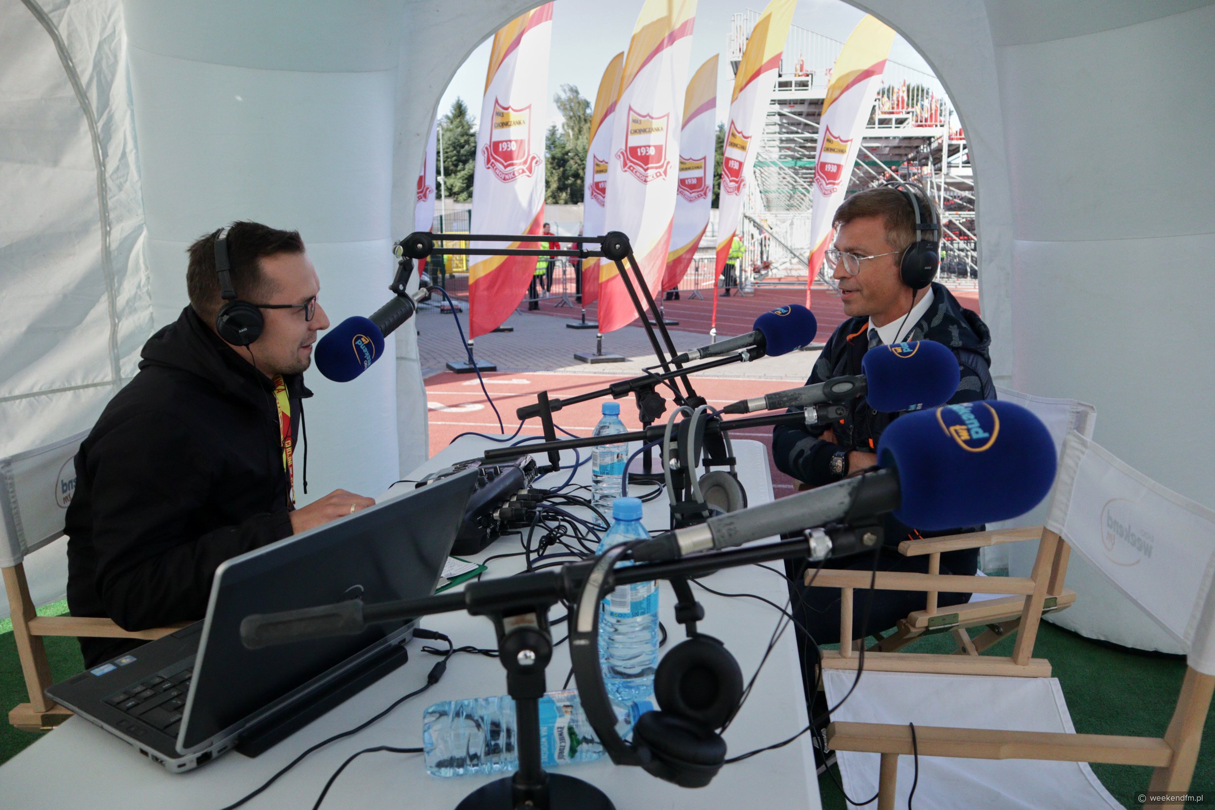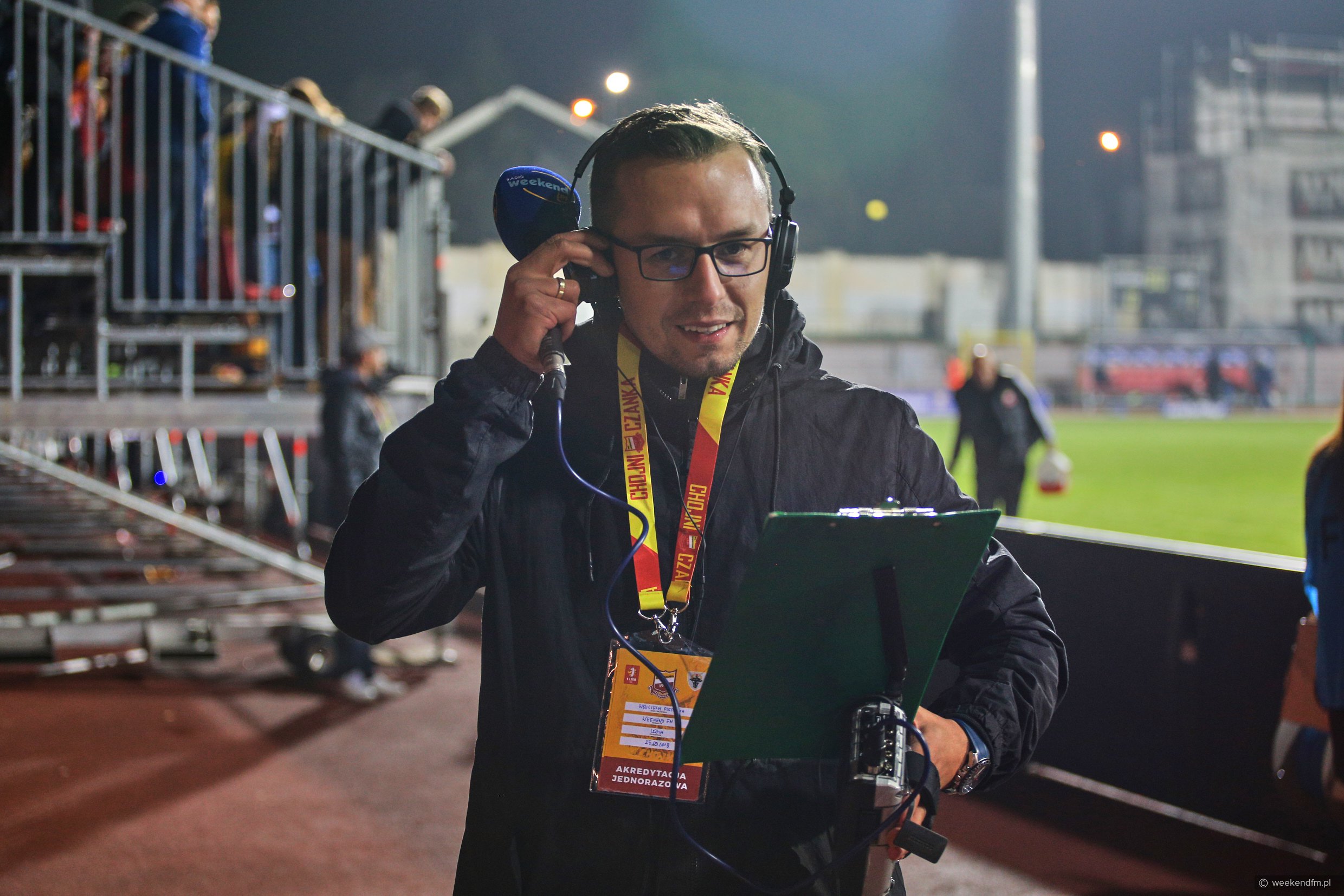 Na stadionie Chojniczanki ustawiliśmy mobilne studio Weekend FM. Nasz reporter Wojciech Piepiorka relacjonował na żywo mecz na antenie naszego radia.