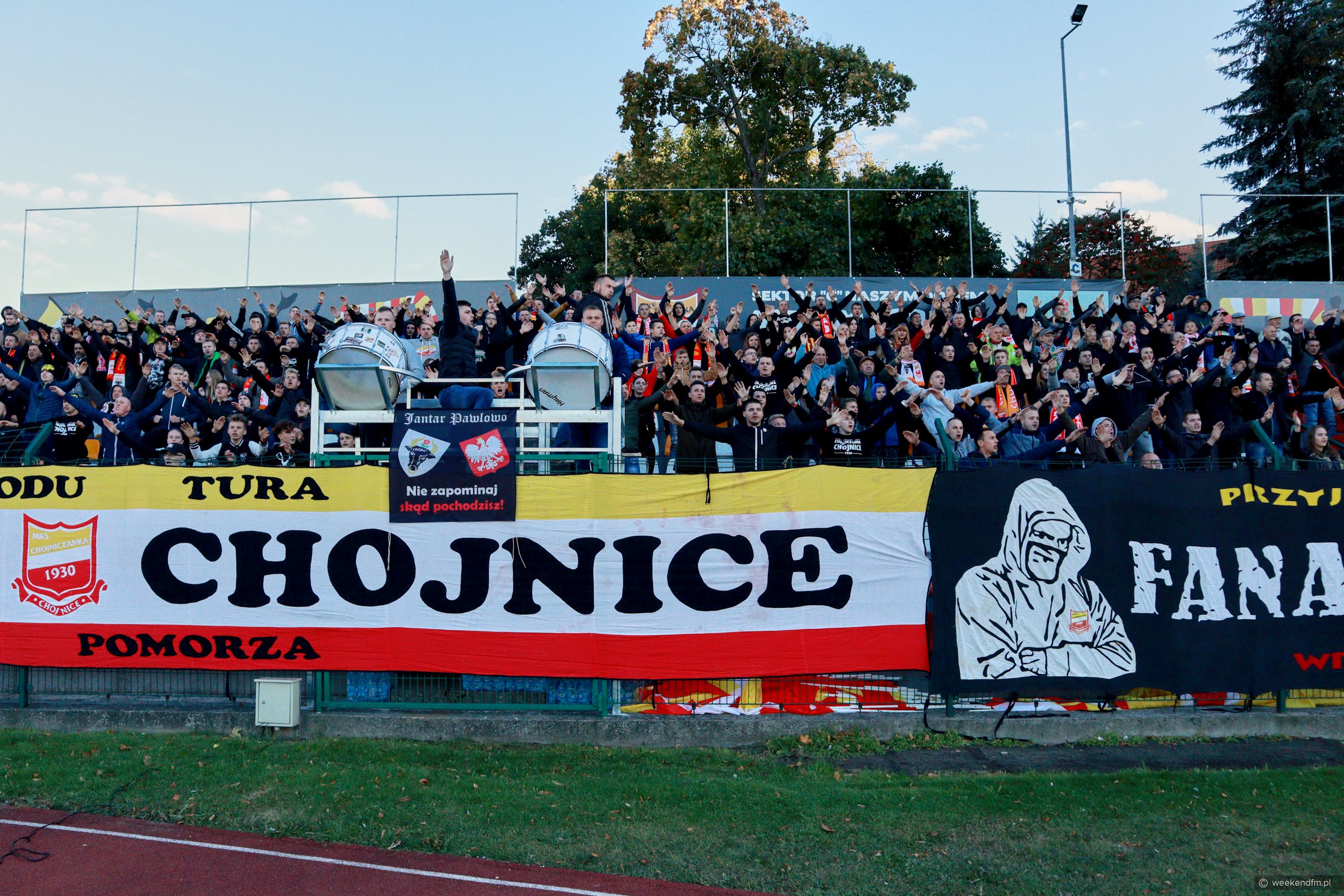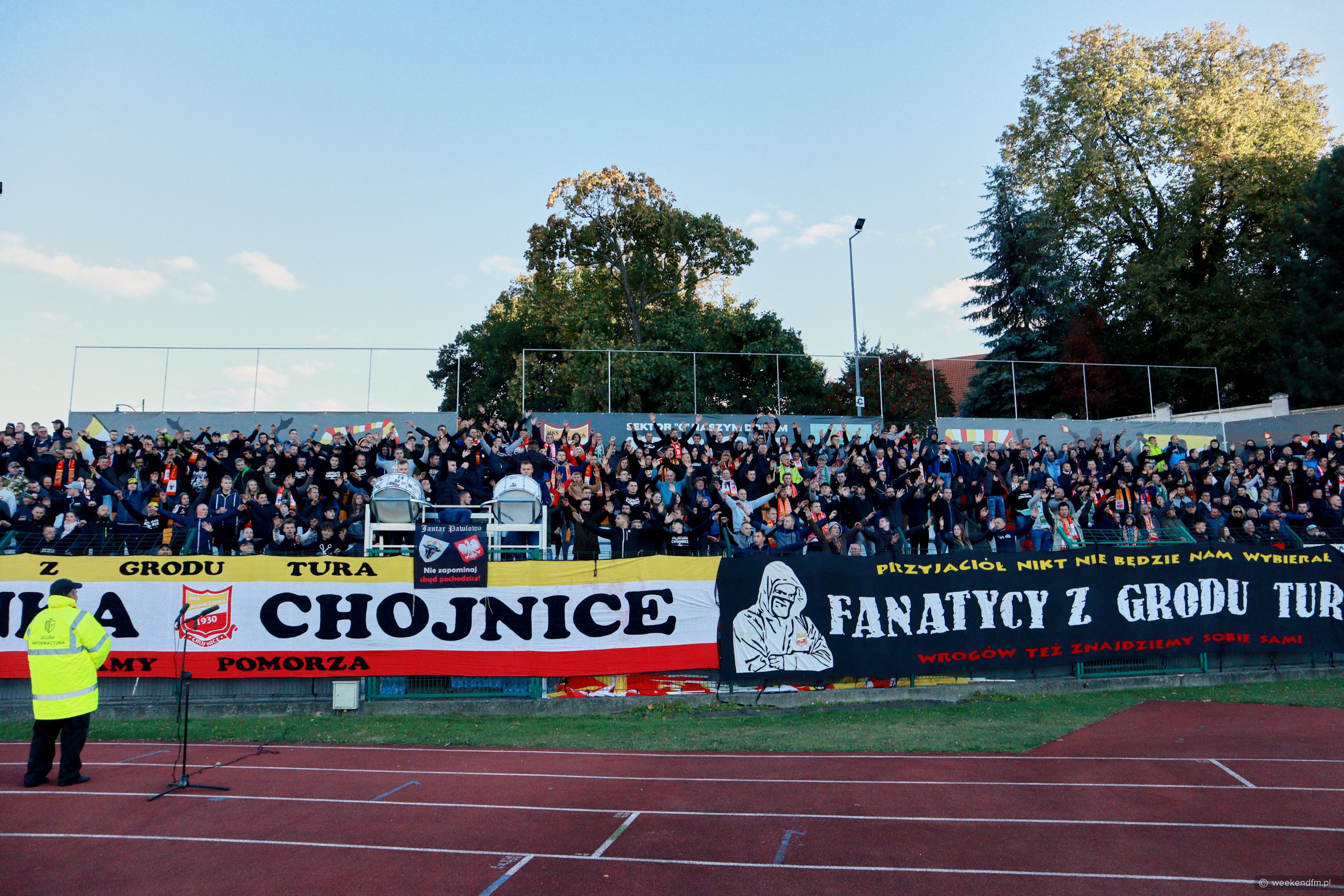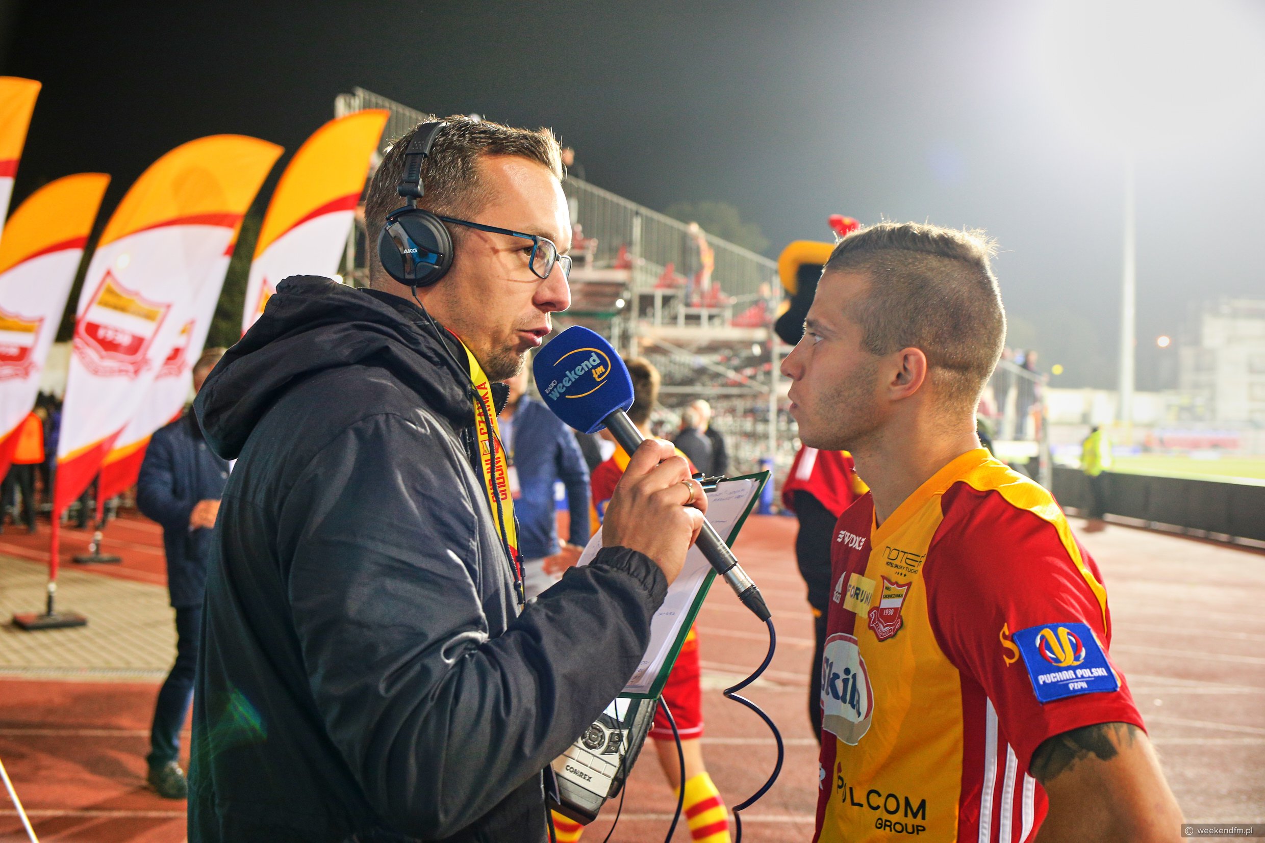 Przed spotkaniem Chojniczanki z Legią odbyło się specjalne wydanie "Sportowego Weekendu" - na żywo z mobilnego studia Weekend FM. Posłuchaj rozmów z komentatorem Polsatu Bożydarem Iwanowem, prezesem Chojniczanki Maciejem Polasikiem, byłym szkoleniowcem Chojniczanki Maciejem Bartoszkiem i wieloletnim kibicem MKS-u Jarosławem "Menym" Kulpińskim.