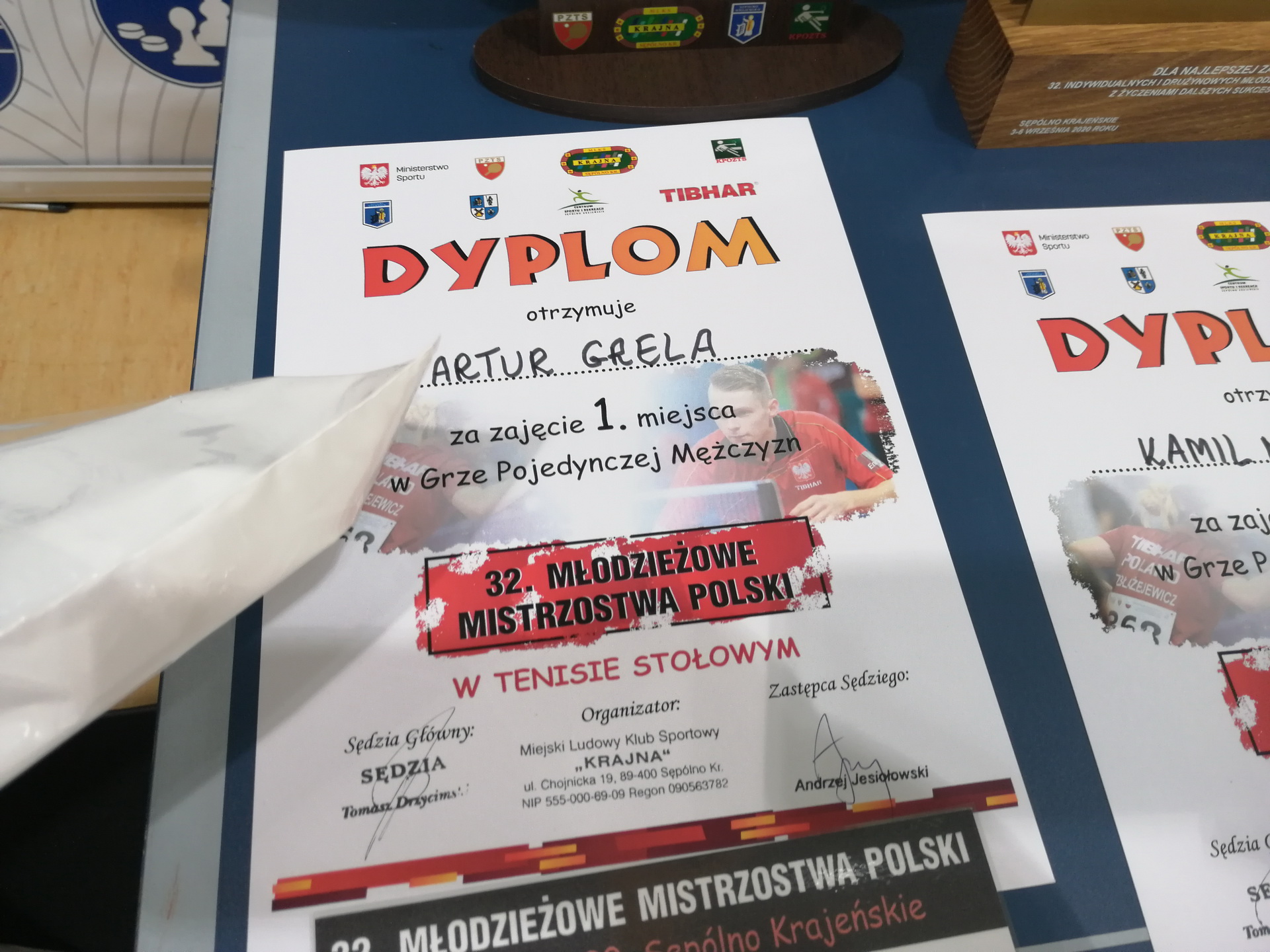 Katarzyna Węgrzyn z AZS UE Wrocław oraz Artur Grela z Gwiazdy Bydgoszcz zwycięzcami Młodzieżowych Mistrzostw Polski w tenisie stołowym.